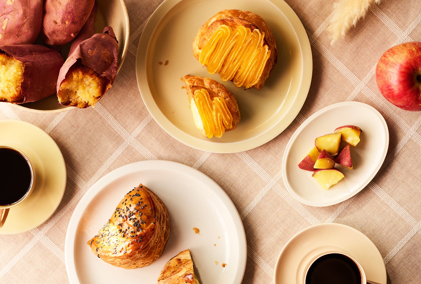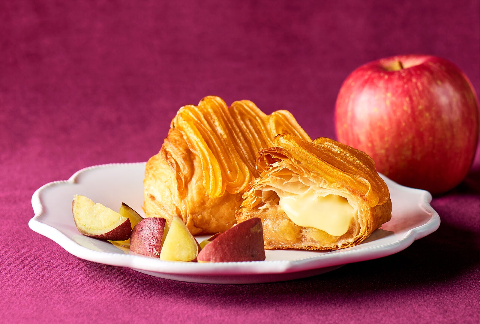 今年のシーズナルアップルパイは、それぞれに用いた異なる種類のお芋の個性と美味しさを、より一層感じられるようリニューアルしました。