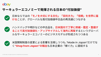 本取り組みを通じ、官民の協働により「日本型CEモデル」の発信を促進し、国際社会におけるサステナブルな成長へ貢献してまいります。イーベイ・ジャパンは、こうした取り組みを通じて循環型経済の促進を支援し、引き続きあらゆる官民パートナーと連携してまいります。
