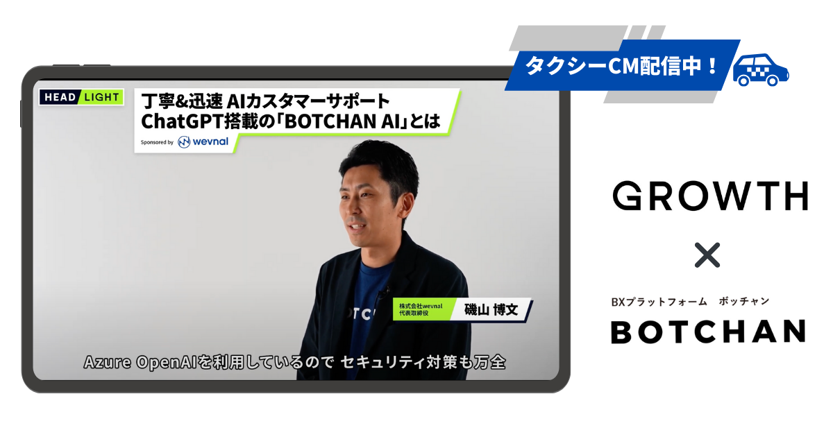 ChatGPTを活用したチャットシステム「BOTCHAN AI」を運営するwevnalがタクシーCMの配信を開始