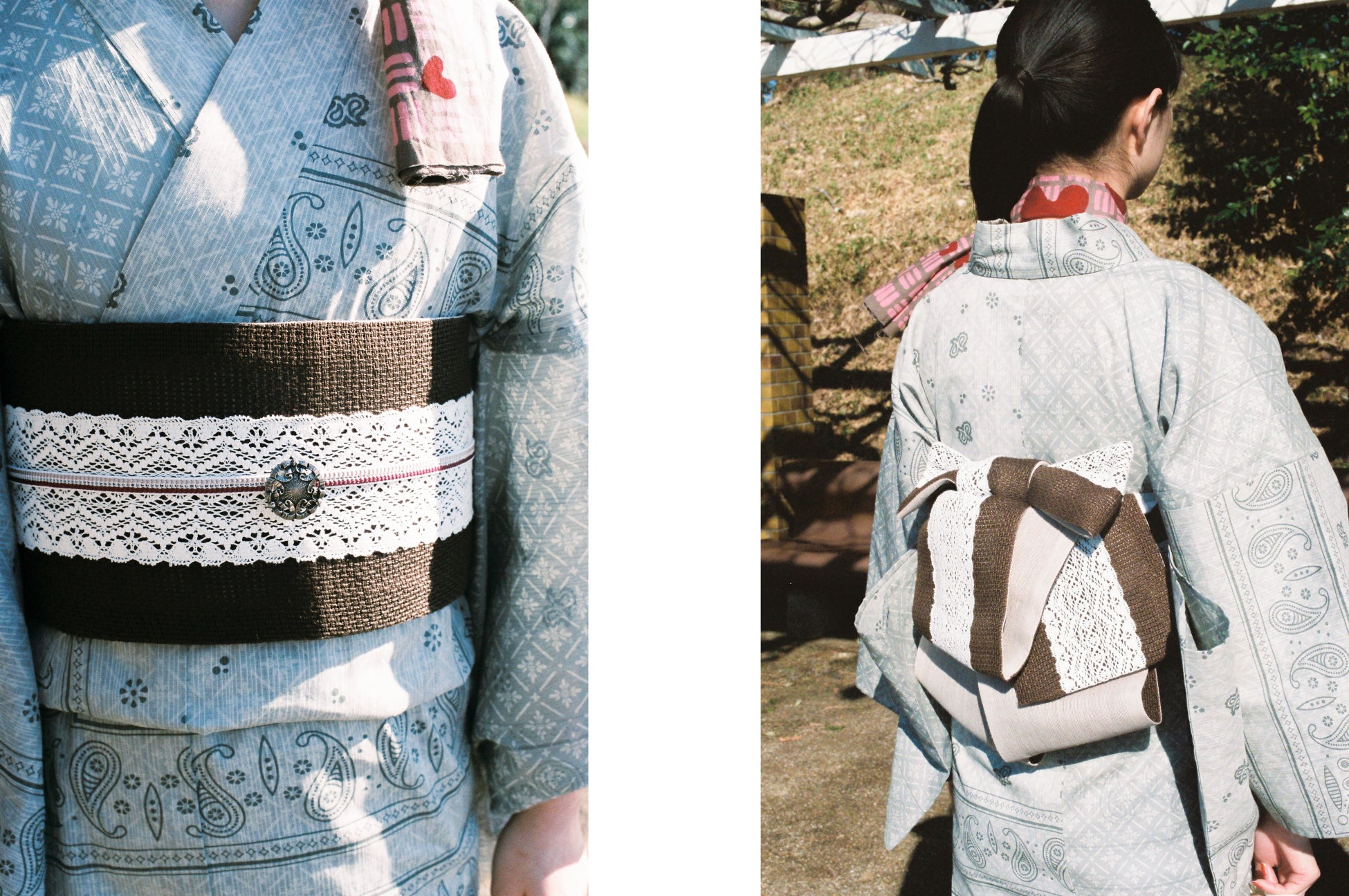 帯としてのハリ感が少ないため、生地の目を収縮させる薬剤をかけることで、ふんわりと結べるへこ帯に生まれ変わりました。