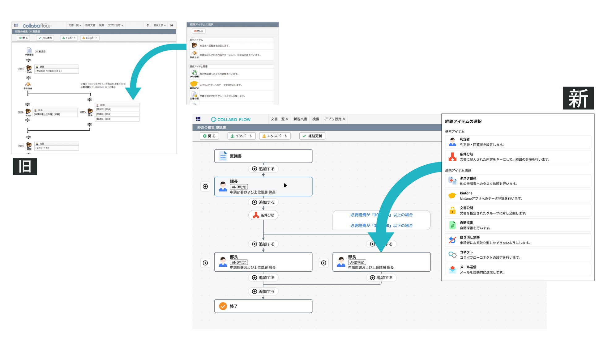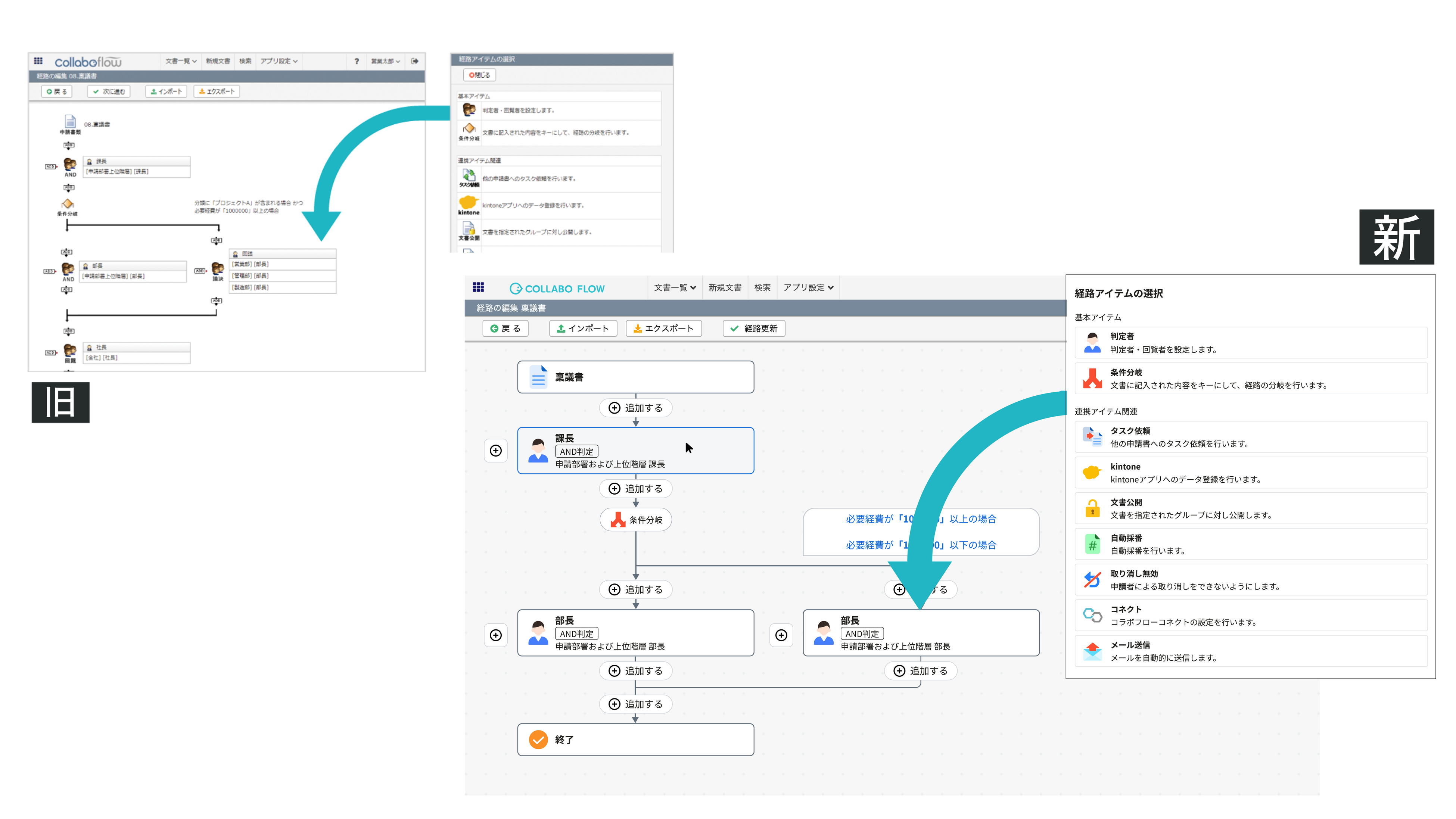 経路設定画面の視認性を向上させ、ワークフローの運用管理者による経路設定をより直感的でスムーズに行えるよう改善しました。