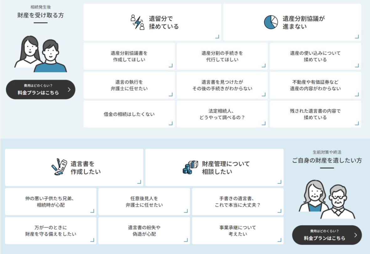 2024年4月1日からは「相続登記」が義務化されたり、「デジタル遺言制度」の創設を政府が検討していたりと、相続を取り巻く環境は時代に合わせて日々変化していますが、どうしても相続は「難しい」「面倒」というイメージを持たれがちです。もともとそのようなイメージを持たれている分野のため、情報を求めてサイトに訪れた方が容易に必要な情報にアクセスできることが重要であり、当事務所のサービスサイトの課題でもありました。