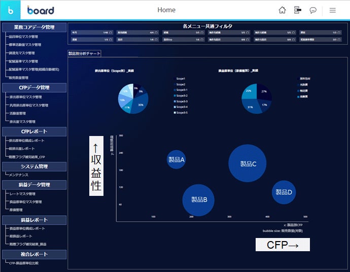 図1:製品別の収益性×CFP可視化ダッシュボードイメージ