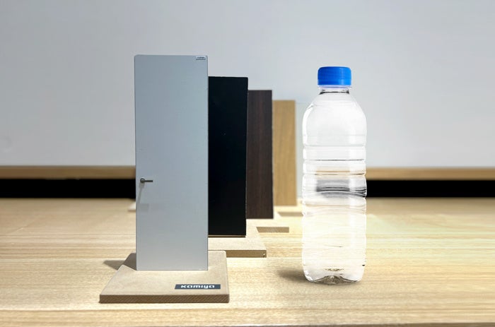 今回のイベントでは、高さ約21cmと、実物の約1/11サイズ(500mlのペットボトルとほぼ同サイズ)のミニドアを作っていただけます。実際の製造工程に則り、ドアの外観だけでなく、内部構造や材料まで実物を忠実に再現しました。
