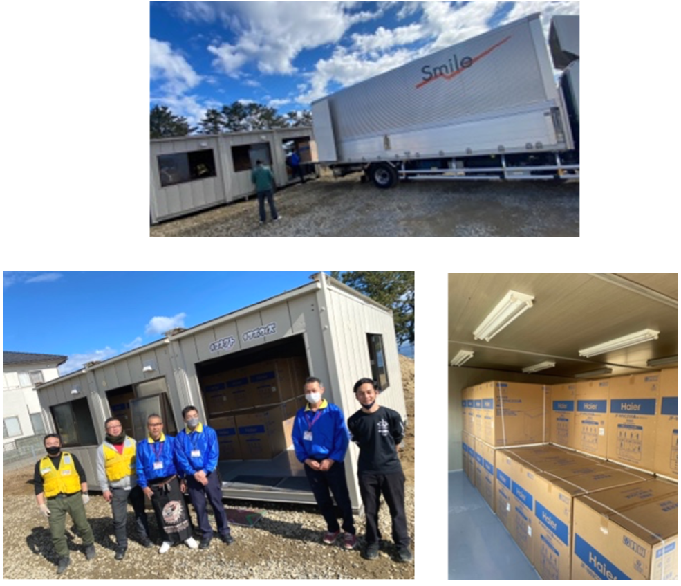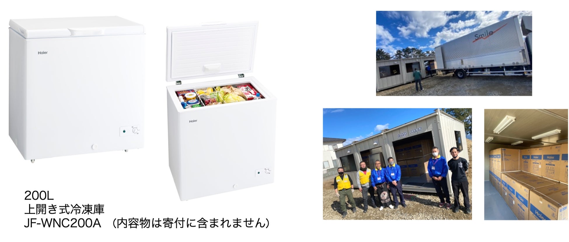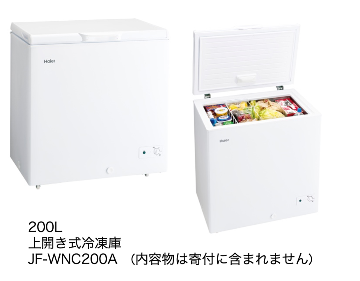 ハイアールジャパンセールス株式会社と株式会社ケーズホールディングスは、この度の震災で被害にあわれた地域の方にお役立ていただけるよう、ハイアール製200L上開き冷凍庫60台を災害支援プロジェクトCONNECT(一般社団法人CON)様を通じ、「災害NGO結」様へ寄付いたしました。寄付した冷凍庫は、石川県で被害にあわれた方にご利用いただく予定です。