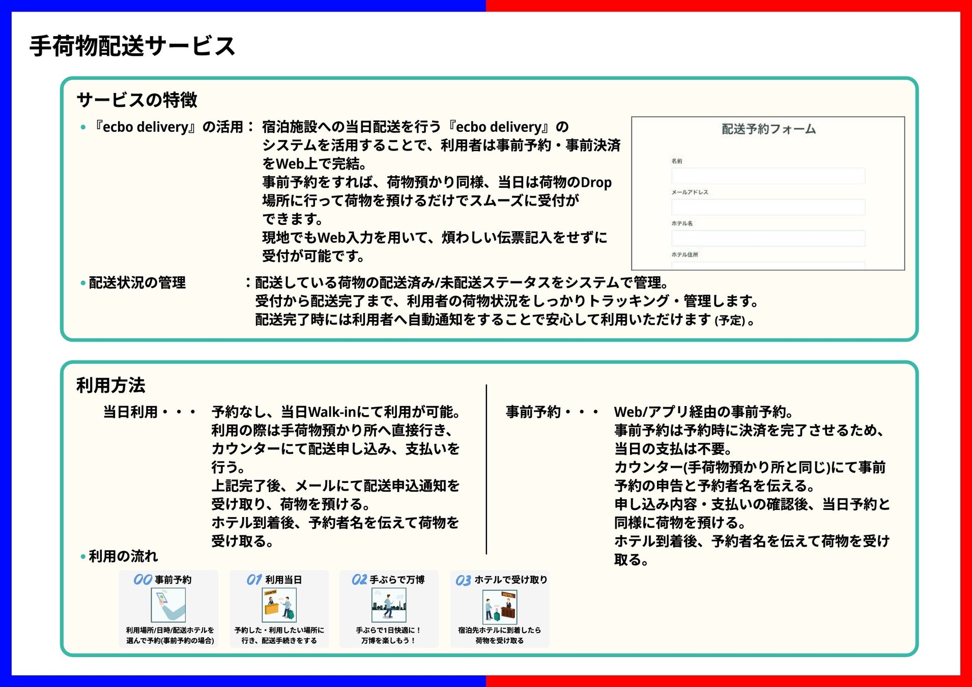 ecboは、今後も大型イベントや観光地等における手荷物預かり需要に対応するサービスを提供し、身軽で快適なお出かけ・観光を実現します。
