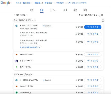 メトロエンジンは、トラベルサービスの提供で宿泊業界の回復に取り組むGoogle社の公式インテグレーションパートナーとして、Googleホテル検索に特化した自社予約エンジン「メトロブッキング」を提供し、各宿泊事業者のWEB集客及び自社予約の強化に貢献しています。「メトロブッキング」では、Googleホテル検索における「ホテルの無料予約リンク」への無償掲載をはじめとし、より戦略的な集客・運用を希望されるホテル・旅館に向けては、専任担当がシステム連携から広告運用までをワンストップでサポートを行っております。