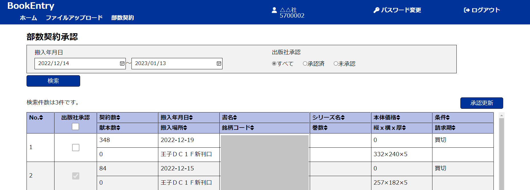 | ②BookEntryに登録された商品の 部数確認、部数契約承認 |