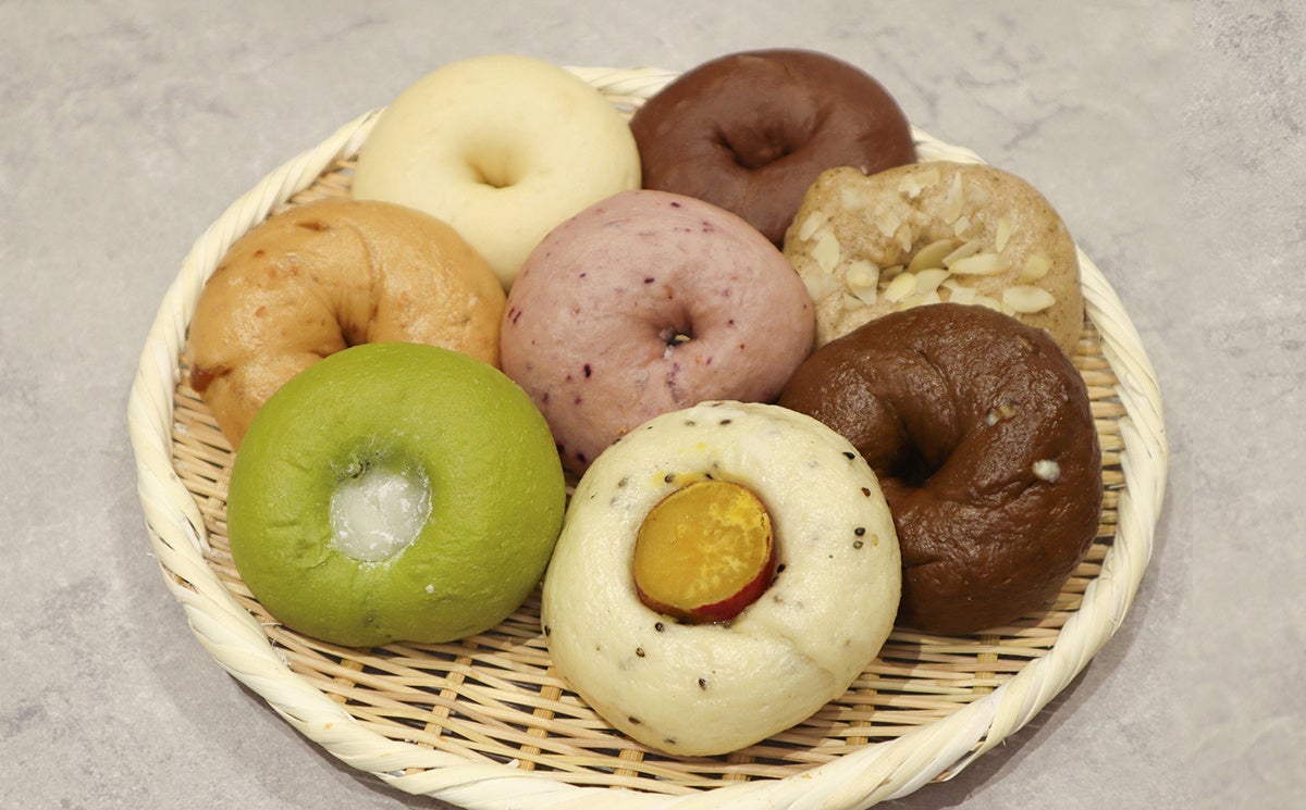 ベーグル:抹茶あんこもち・プレーン・ミックスベリー・ミルクティ・ごまさつまいも・ミルクキャラメルウォルナッツ・チョコ×チョコ・ほうじ茶×ホワイトチョコ