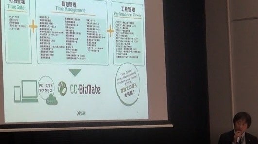 最後に行ったクロスキャットの「CC-BizMate」のバージョンアップに関する説明では、大幅に強化したシフト管理の追加機能などについて発表しました。