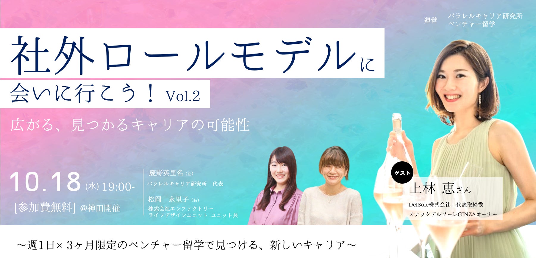 「社外ロールモデルに会いに行こう!Vol.2~週1日×3ヶ月限定のベンチャー留学で見つける、新しいキャリア~」を10月18日19:00-からパラレルキャリア研究所と共に開催します