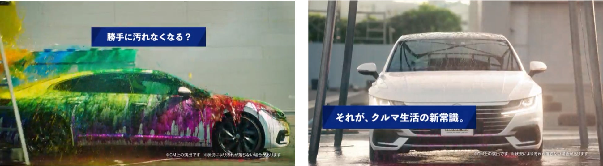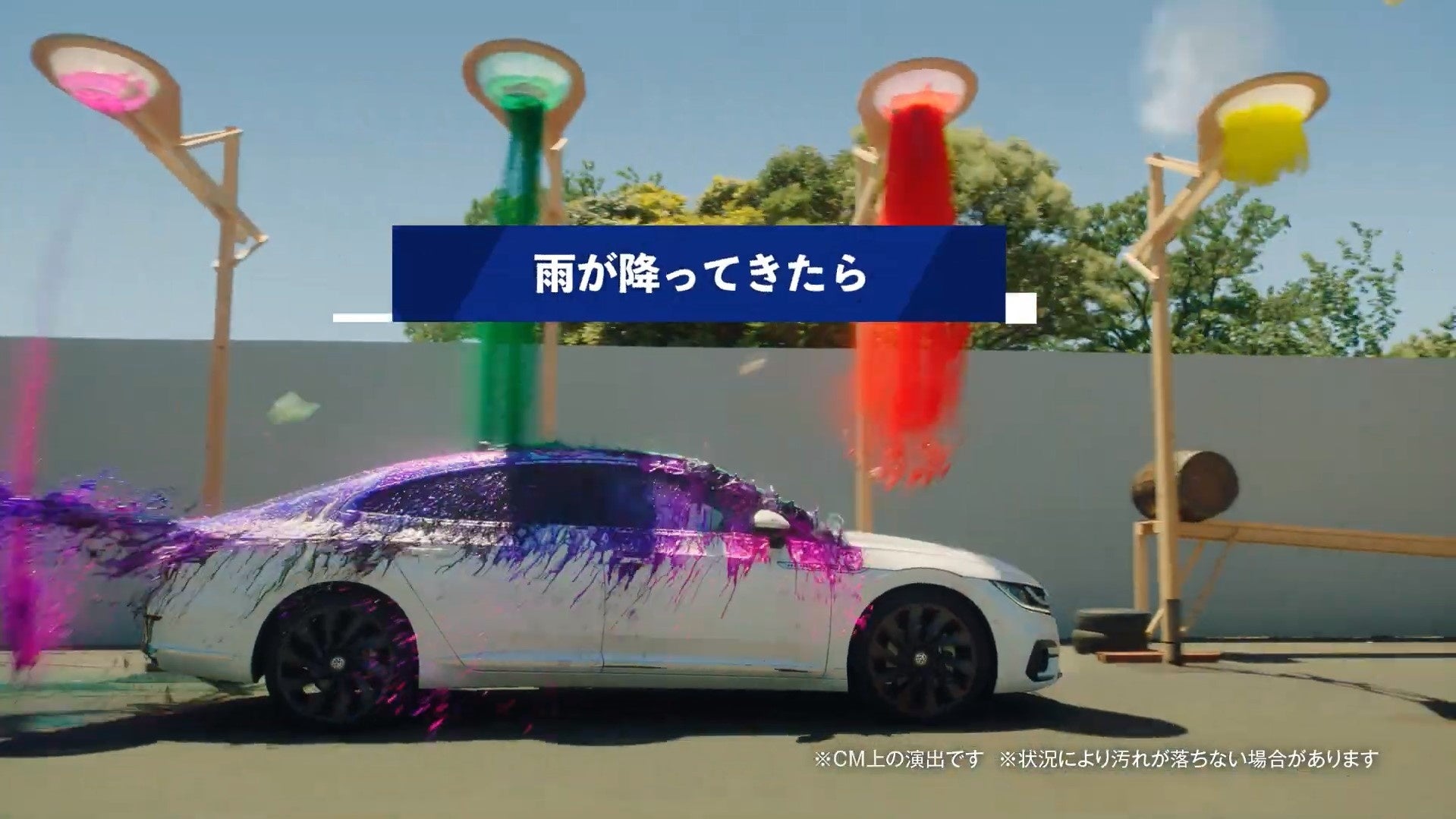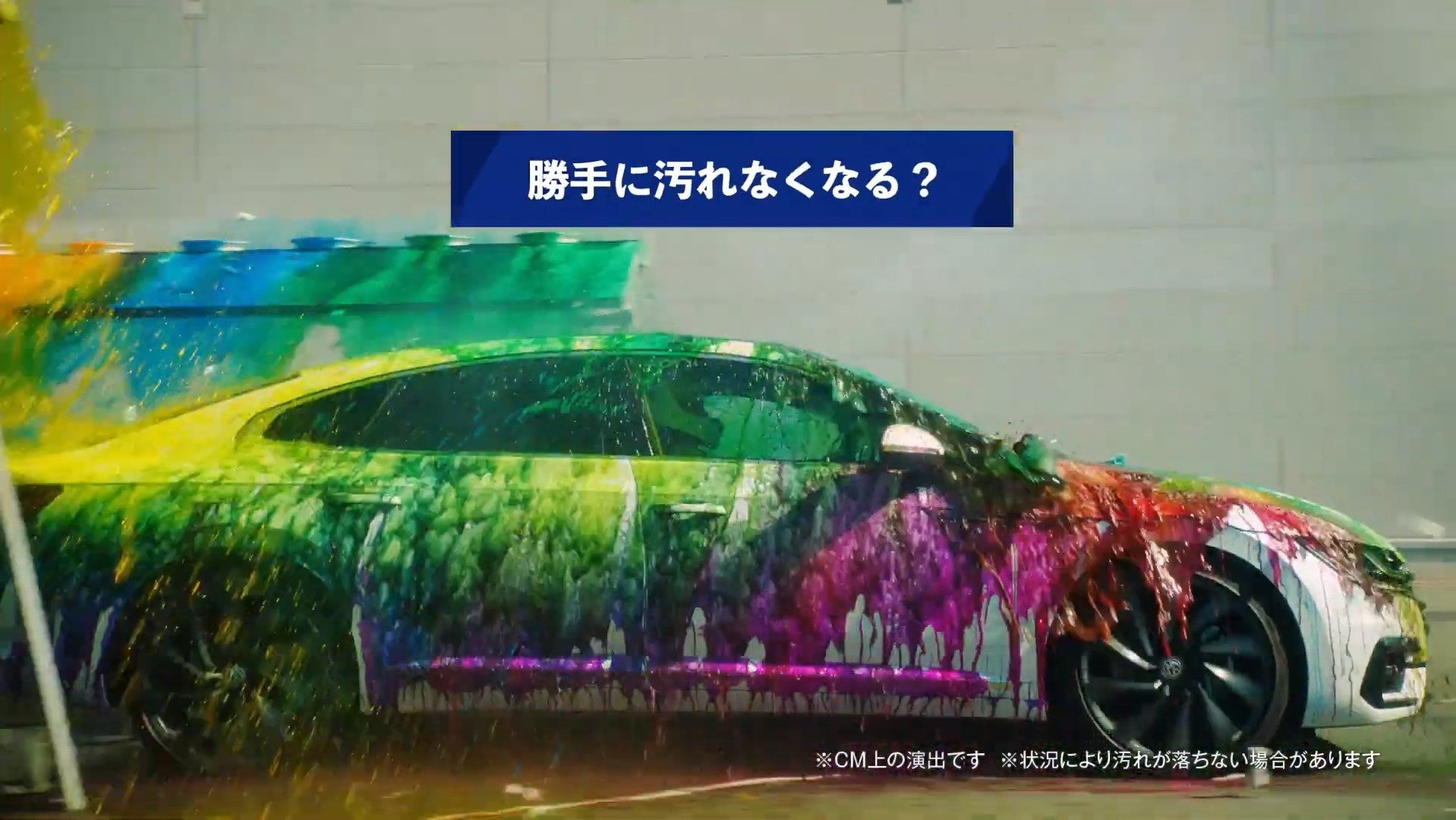新CMでは、「KeePerすると、ピッカピカになって勝手に汚れなくなる?」「雨が降ってきたら、勝手に洗車になる?」「そんな話、信じられる?」と問いかけます。キーパーコーティングを施したクルマは、KeePer技研独自のコーティング技術によって汚れを模した色水を弾き、汚れずに颯爽と走り抜け、CMの最後には水をかけただけで何もなかったかのように美しい状態に戻ります。次々に現れる汚れを弾くシーンは、一切CG加工なしで収録されております。