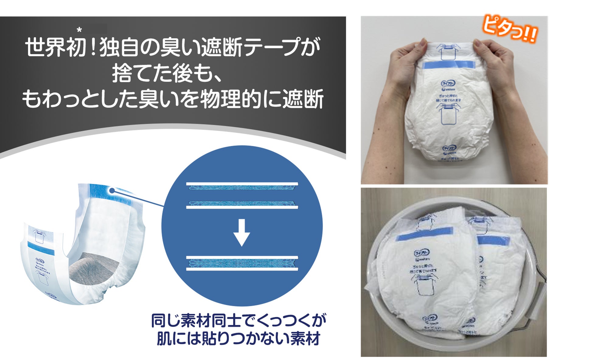 そこでこのたび、世界初※1の「臭い遮断テープ」と尿の臭気成分を抑制する「99%消臭※2活性炭シート」を搭載した『ライフリー ズレずに安心消臭紙パンツ専用尿とりパッド』を発売します。