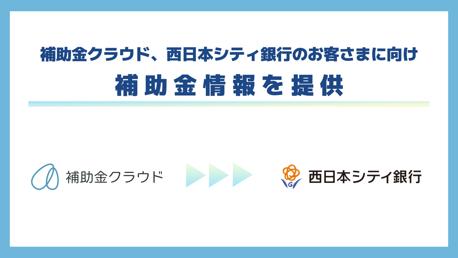 補助金クラウド、西日本シティ銀行のお客さまに向け、補助金情報を提供 九州エリアの地銀では初の取組