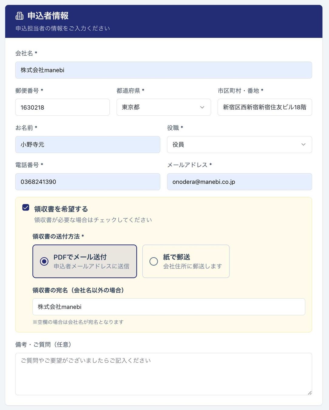 事務手続きの負担軽減: 申し込み段階で「領収書の有無」や宛名などを直感的に選択・入力できるようフローを整理しました。細かな使い勝手を追求することで、申し込みに伴う経理・事務作業の煩雑さを解消しています。