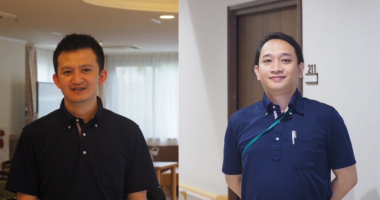ウィジャヤ チュマガ プトラさん(写真右)はインドネシアに介護施設が少なく、親の将来を考えたとことをきっかけに介護の業界に足を踏み入れました。介護福祉士資格を持つ知人から業務範囲が増えることや家族を連れてくることができることを知り在留資格「介護」の取得を目指しました。もうすぐ日本で家族と暮らせることを楽しみに次はケアマネージャーになりたいと話します。