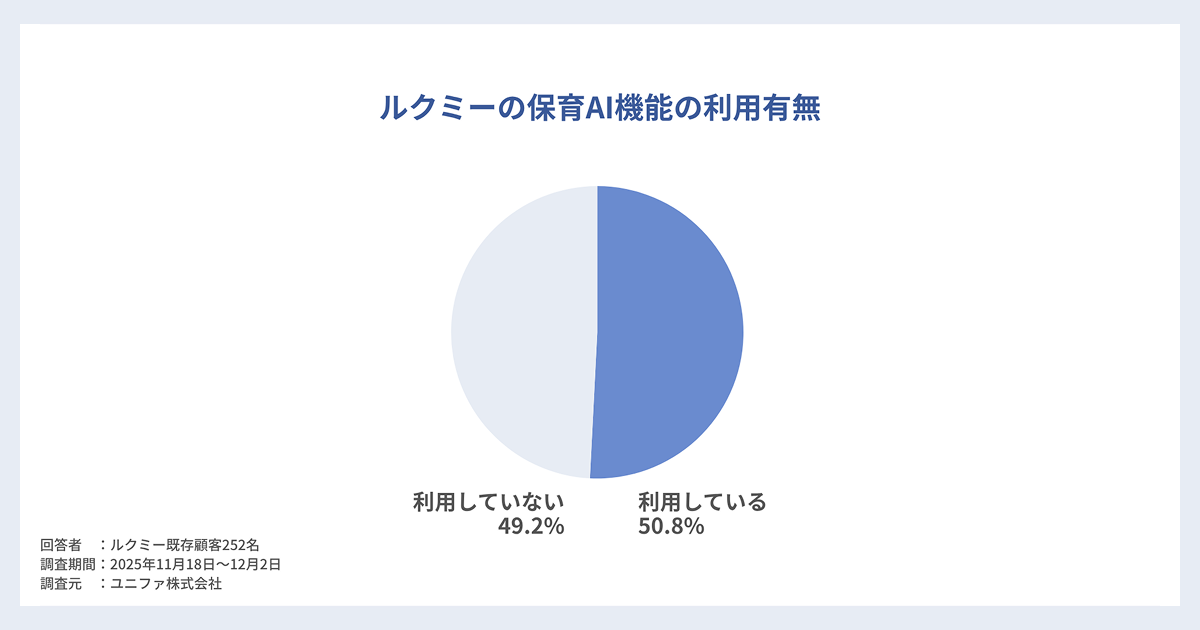 ルクミーの保育AI機能の利用率は約半数(50.8%)に到達