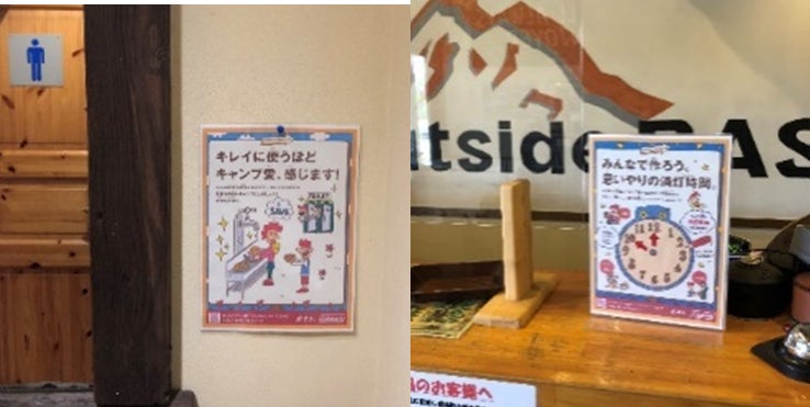 洗い場などの施設や焚火でのマナーやゴミの分別についてなどキャンプ場に直接設置できるPOPを制作して、賛同いただいたキャンプ場に配布しています。