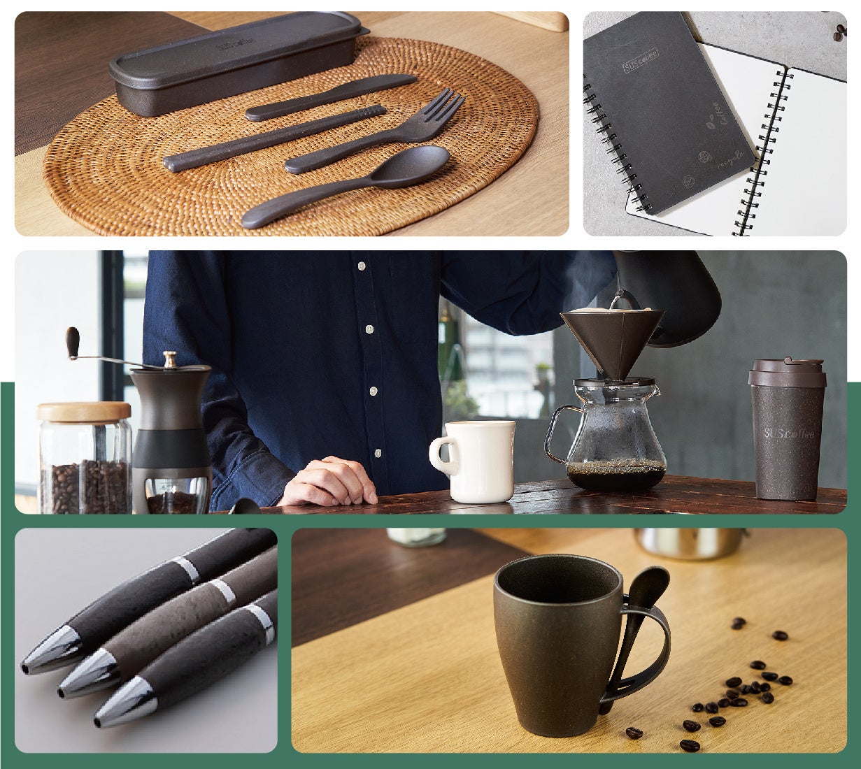コーヒーは、抽出後にかすとして出るゴミの大量廃棄が問題視されており、とくに使用済みのコーヒー豆かすは、温室効果の高いメタンガスを生成することから環境にも悪影響を及ぼすと言われています。当社はこの問題に着目し、日々慣れ親しんでいる食材からできたグッズは一般消費者の親和性も高く注目が高いと踏まえ、資源を再利用して製品化できないかと考えました。