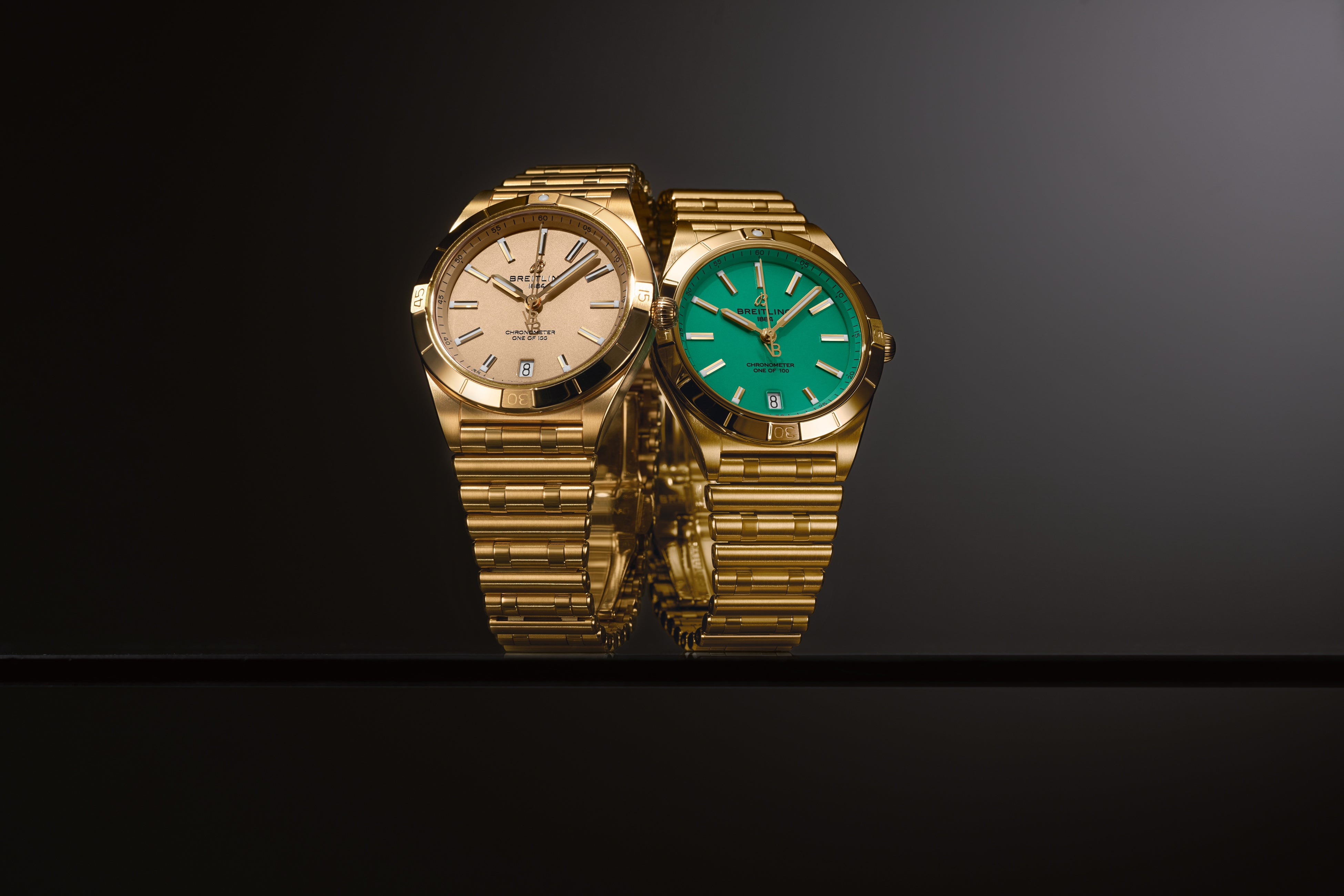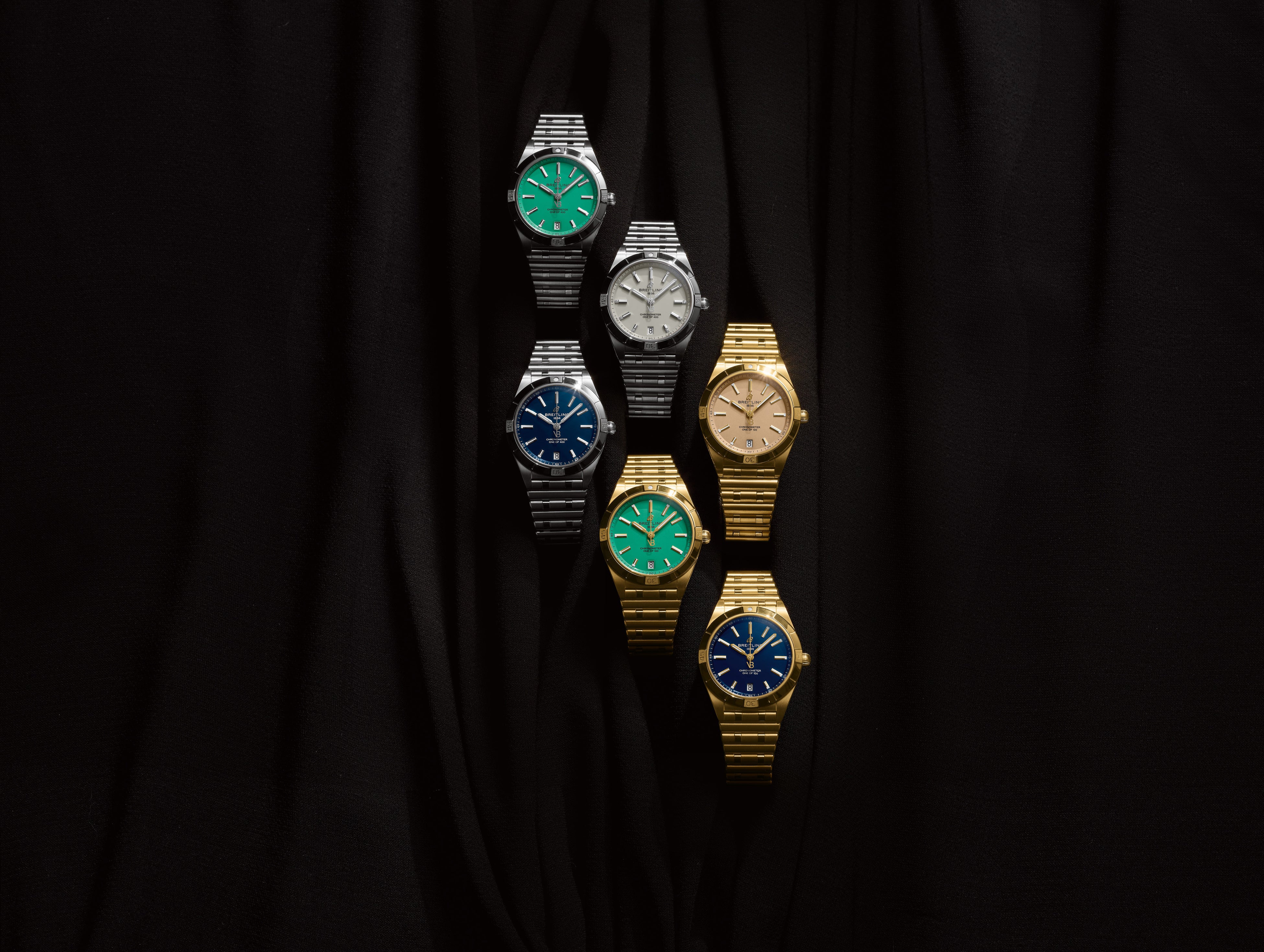 このコレクションでは、ダイヤルにブライトリングのロゴ、秒針にはヴィクトリア・ベッカムのイニシャルがあしらわれ、ケースはステンレススチール、またはこのラインのためにブライトリングが特別に復活させたイエローゴールドからお選びいただけます。また、限定モデルであることは文字盤上にも明記され、ステンレススチール製の場合は各色「ONE OF 400」、ゴールド製は各色「ONE OF 100」と表されます。ブレスレットにさりげなくあしらわれたVBのロゴと刻印にもご注目ください。