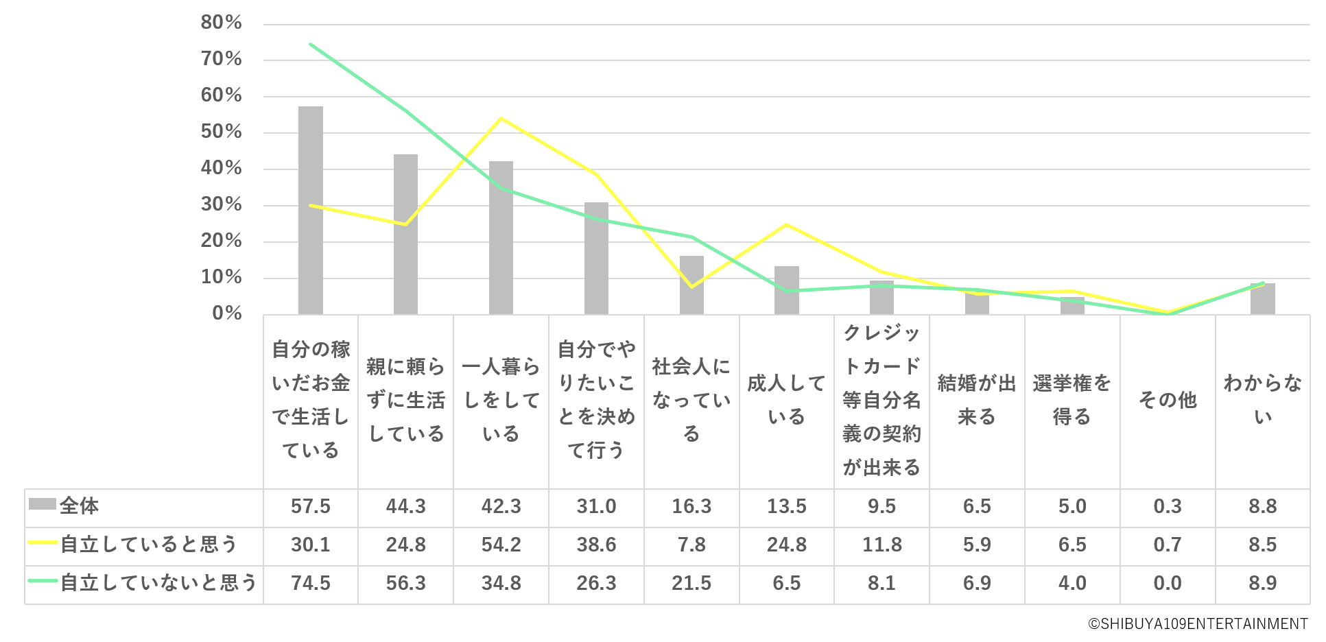 「選挙権を得る」などの、年齢によって自動的に付与される社会的な権利の獲得だけでは自立と考えておらず、「自分でやりたいことを決めて行う」といった自分の意志での能動的な行動可否が、彼らにとっての自立であることがわかりました。