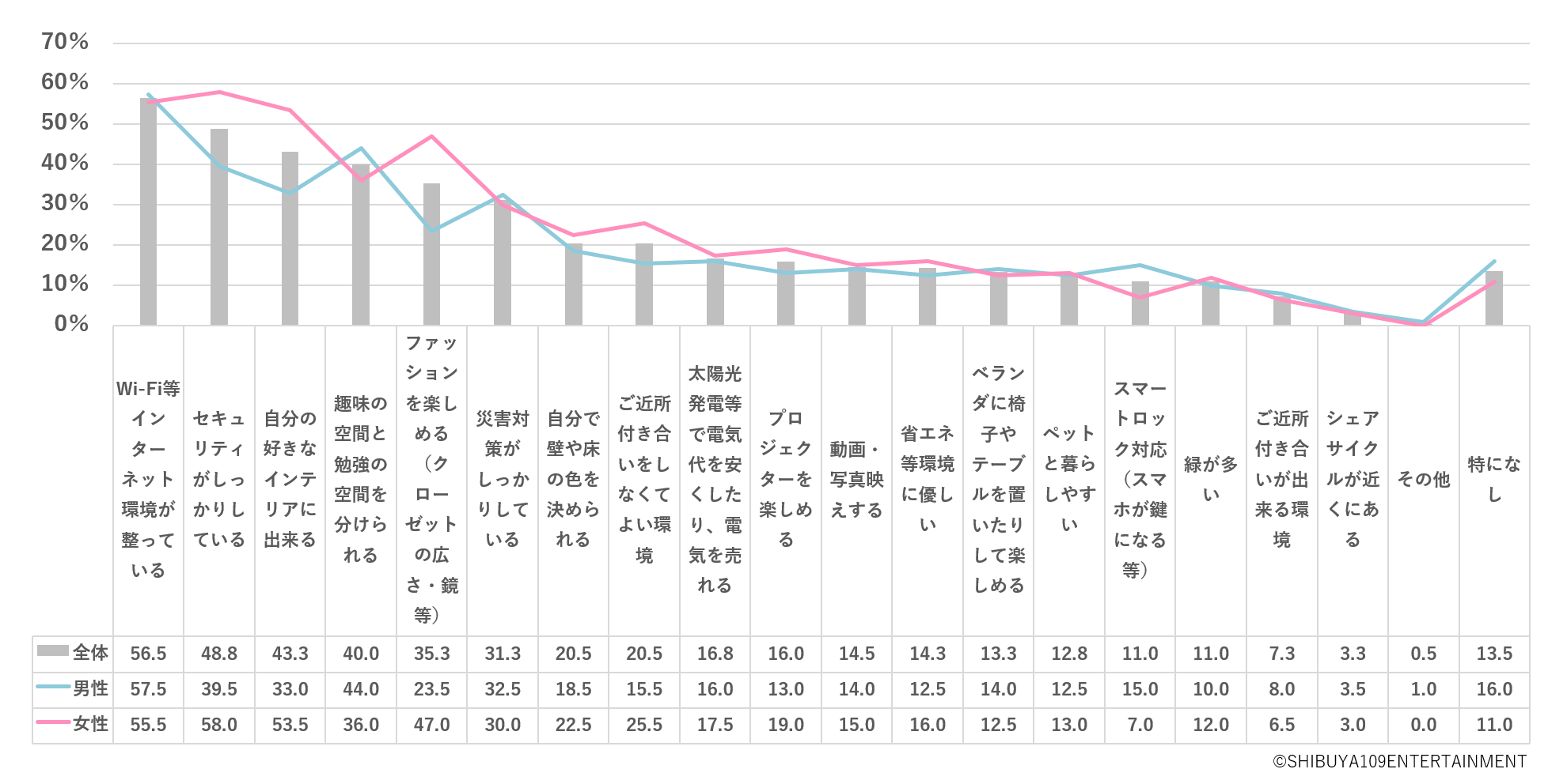理想の生活環境は女性がデザイン面、男性が機能面を重視。