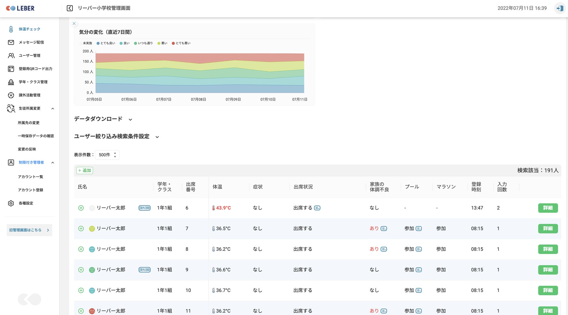 ■LEBER(リーバー)の健康観察機能(教育機関向け)について