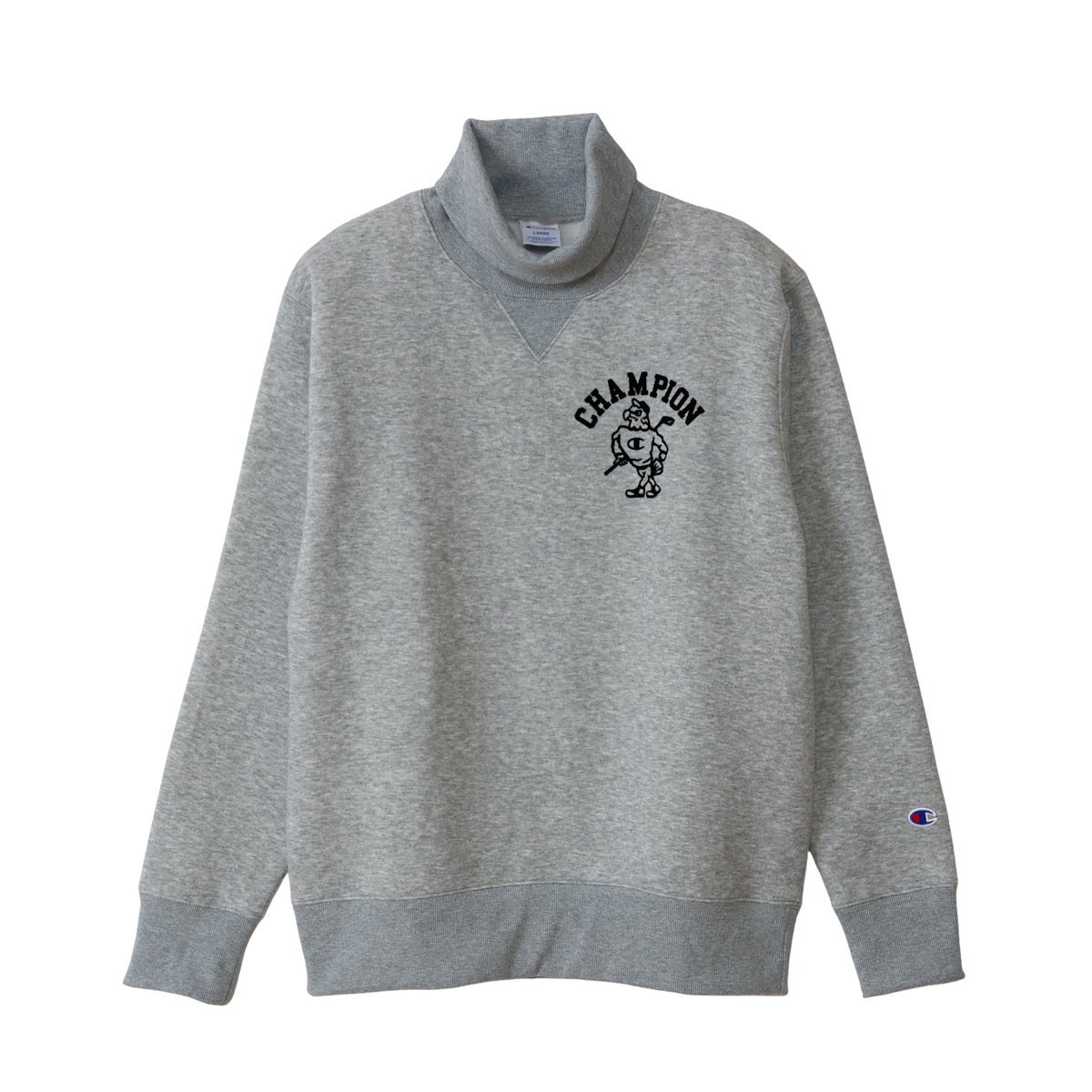 ストレッチ性と裏面を起毛することで保温性を向上しつつ、軽量化も実現した「Light Stretch Warm」を使用した、TECH WEAVE®(テックウィーブ) テリー タートルネックスウェットシャツです。Champion®(チャンピオン)の歴史を感じるオーセンティックな裏毛編みのスウェット素材で、コットンのようなソフトな肌触りと無骨ながら温かみと深みのある豊かな表情が特長です。着慣れた感覚で着用できる程良いリラックスフィット。襟元にガゼットを付けることで伸縮性が向上し、脱ぎ着の際のストレスを軽減しています。手首のリブは、アドレス時に邪魔にならない少し長めの仕様です。左胸にはカレッジ風の書体による「CHAMPION」と、ゴルフクラブを持ったイーグルのキャラクターを組み合わせたグラフィックをフロッキープリントで入れています。