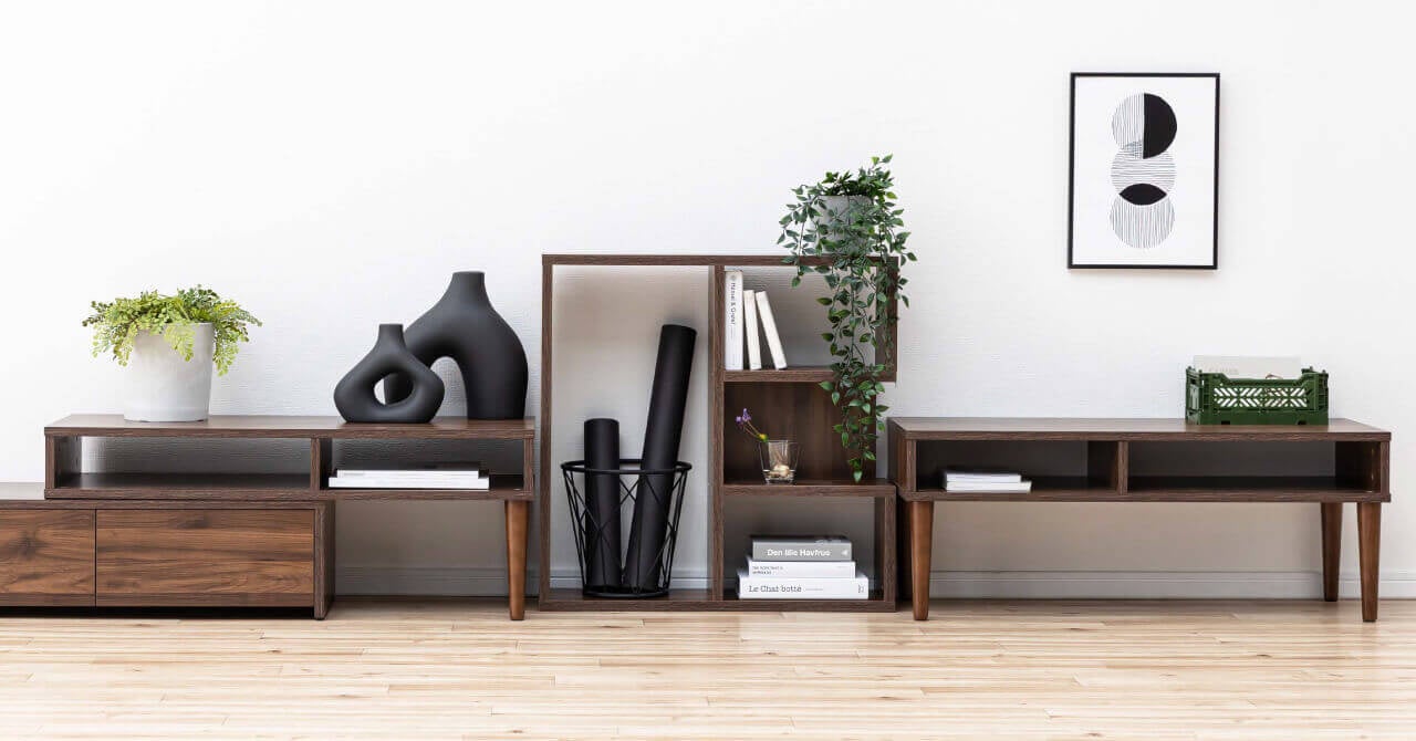 テレビボードやセンターテーブルにも収納を設け、限られたスペースのお部屋を広く使うことができます。