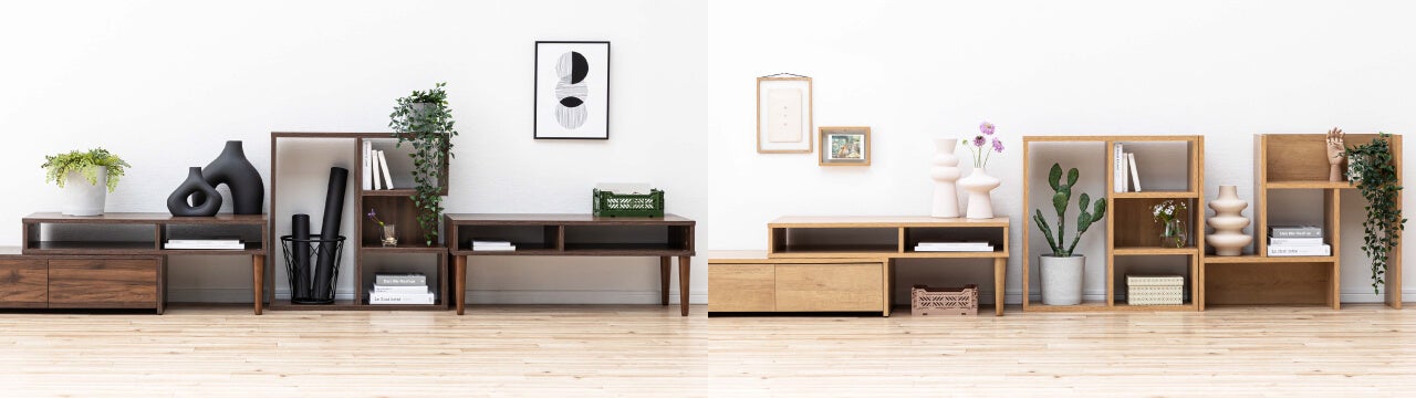 部屋のサイズに合わせてフィットする伸縮性やコンパクトなつくりと、どんなコーディネートにもマッチするシンプルなデザインで、シリーズすべて月額1,000円台の価格を実現しました。