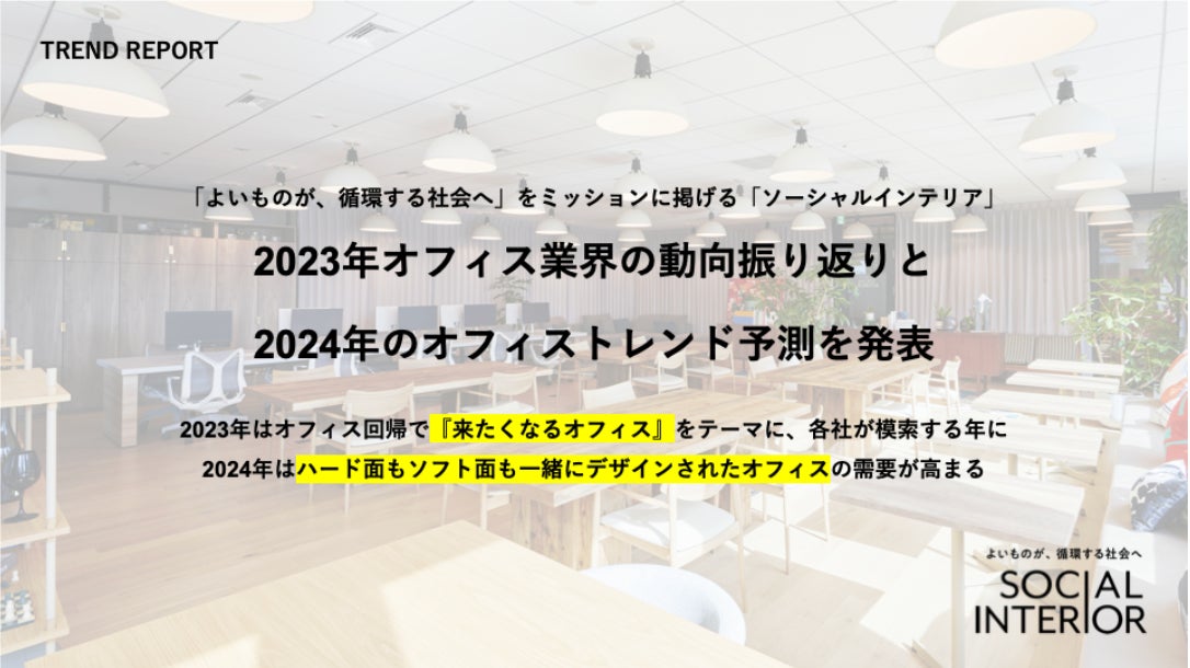「よいものが、循環する社会へ」をミッションに掲げる「ソーシャルインテリア」 2023年オフィス業界の動向振り返りと2024年のオフィストレンド予測を発表