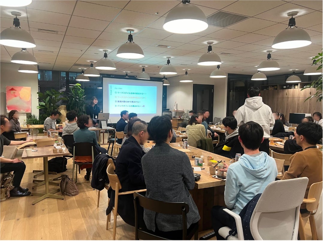 イベント当日、コミュニティ参加者を含む30名ほどが集まり、2023年の締めくくりに、これまでのオフィスや働き方の変化を振り返り、2024年の動向について考える機会として、意見交換・情報交換を行いました。