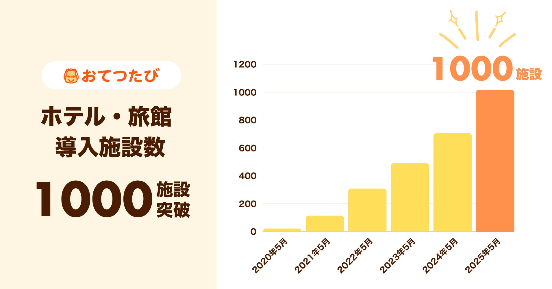 お手伝いと旅を掛け合わせた人材マッチングサービス「おてつたび」を運営する株式会社おてつたび(本社:東京都渋谷区、代表取締役:永岡里菜、以下「おてつたび」)は、ホテル・旅館などの宿泊施設での導入数が1000件を突破したことをお知らせいたします。