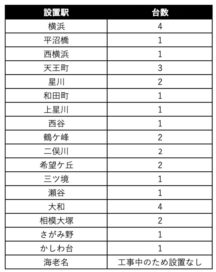 2022年11月30日より、相鉄本線の横浜〜かしわ台駅まで合計30台のアイカサを設置