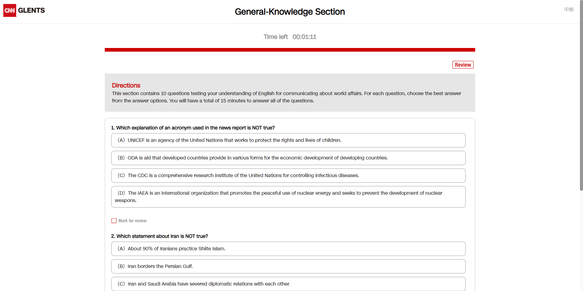特に「国際教養セクション」は、問題内容も含めて他のテストにないユニークさを感じましたが、実際のビジネス・日常生活の場面でコミュニケーションを取っていく際には知っておくべき内容ばかりでしたので、日々の学習姿勢を猛省いたしました。私自身は海外留学を志望しておりますが、CNN GLENTS受験を通じて一層学習の意欲が湧き上がってきました。