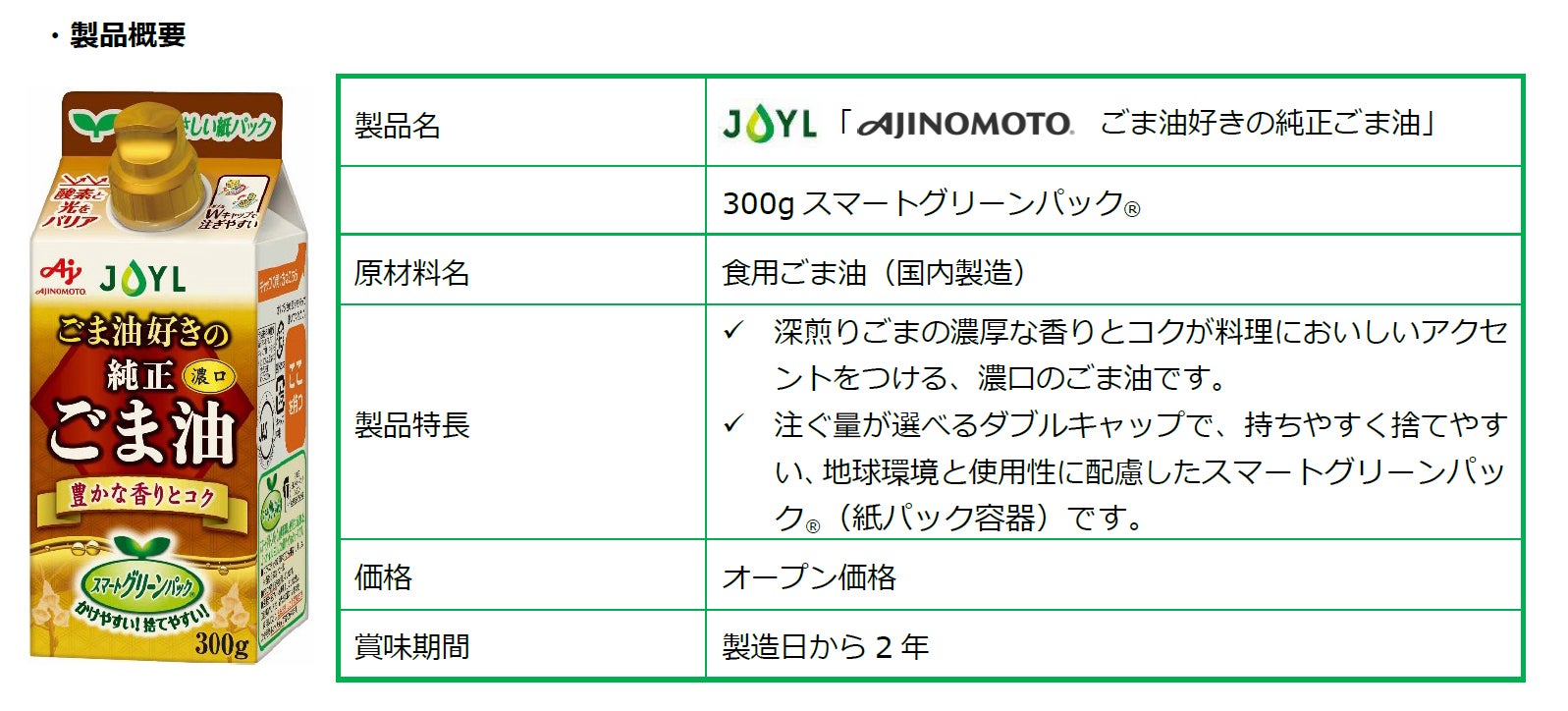 -新製品JOYL「AJINOMOTO やさしいOliveOil」2月22日より全国出荷開始JOYL「AJINOMOTO ごま油好きの純正ごま油」には新サイズが登場 -