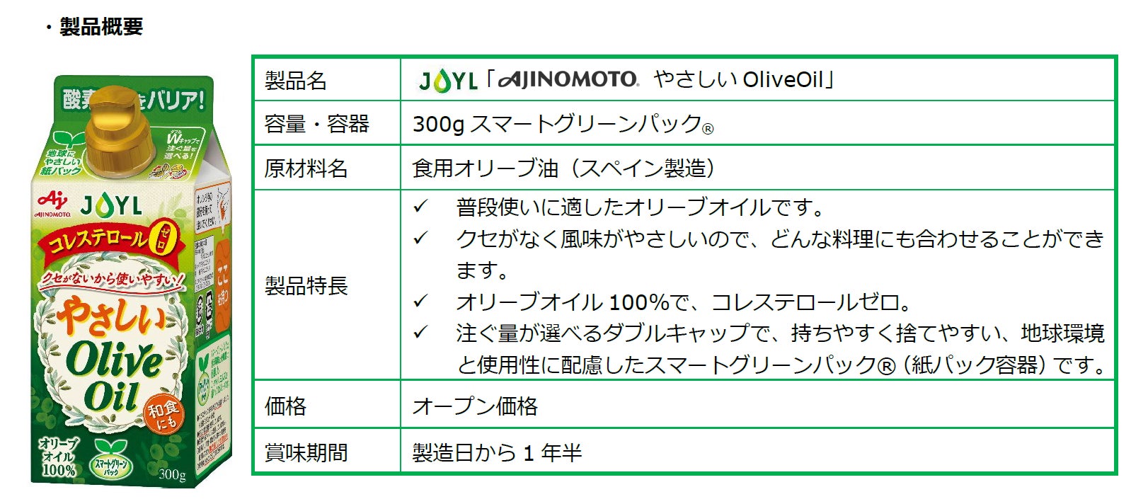 ■新製品:JOYL「AJINOMOTO やさしいOliveOil」