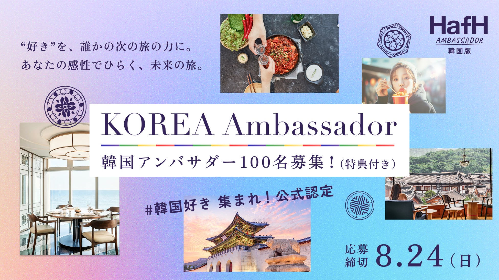株式会社KabuK Style(本社:東京都中央区、代表取締役:砂田憲治、以下「KabuK Style」)が提供するつみたて旅行サービス「HafH(ハフ)」は、本日「HafHアンバサダー 韓国プロジェクトメンバー(以下、「韓国アンバサダー」)」最大100名の募集を開始しました。