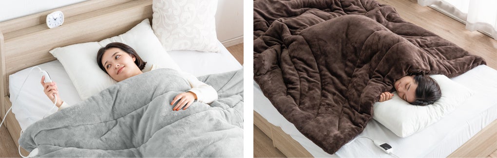 シンサレートとイージーウォームの2種類の高性能な素材を使用し、より布団の中に冷気が入りにくく、暖かさをキープすることができます。一般的な電気布団に多く見られる固い電熱シートの感触がないため、ふかふかで快適な寝心地を体感できます。