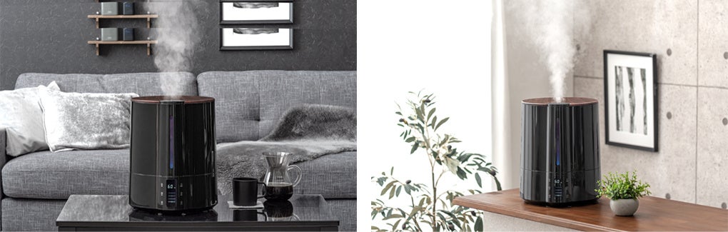また、超音波式の加湿機能によって最大22時間連続の加湿が可能です。繊細なミストは熱を感じないため、やけどの心配がなくお子様やペットがいるご家庭でも安心してご使用いただけます。