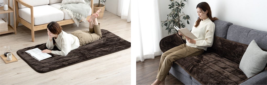 リビングの床やソファの上に敷くことで足元や座面を暖められるため、より快適なくつろぎ空間をサポートします。