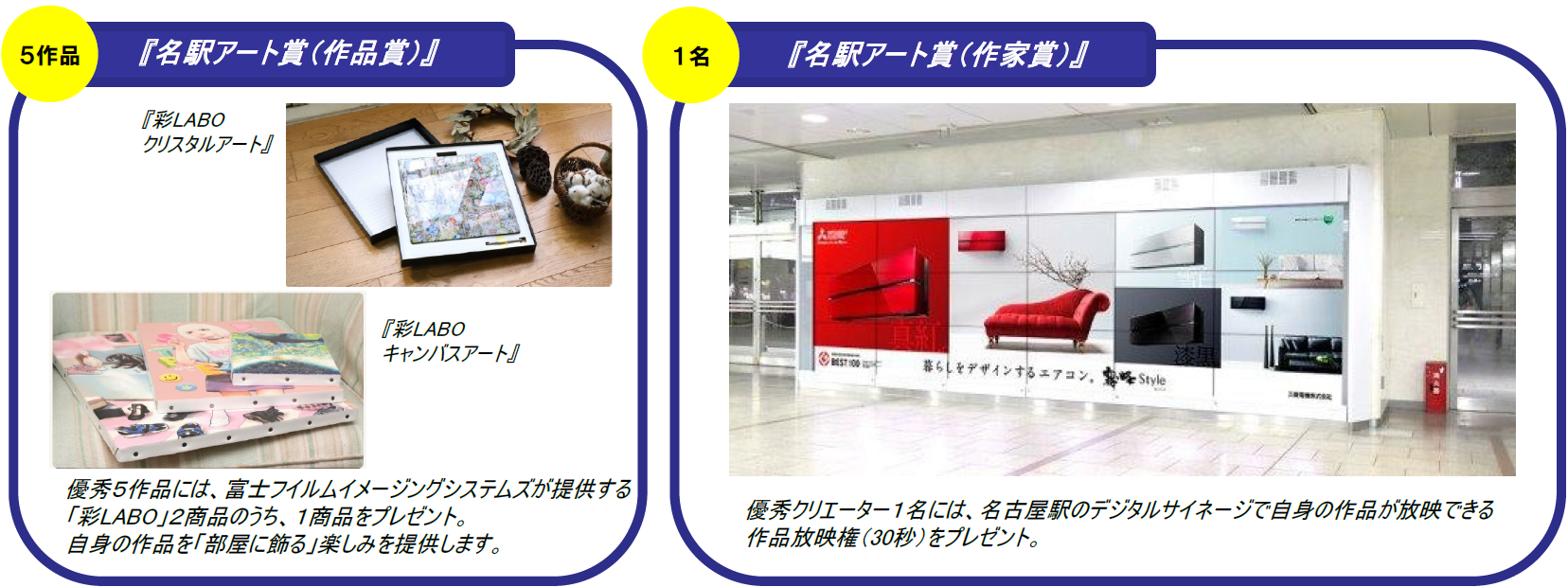副賞として、JR名古屋駅のデジタルサイネージでの作品放映権(30秒)をプレゼント。