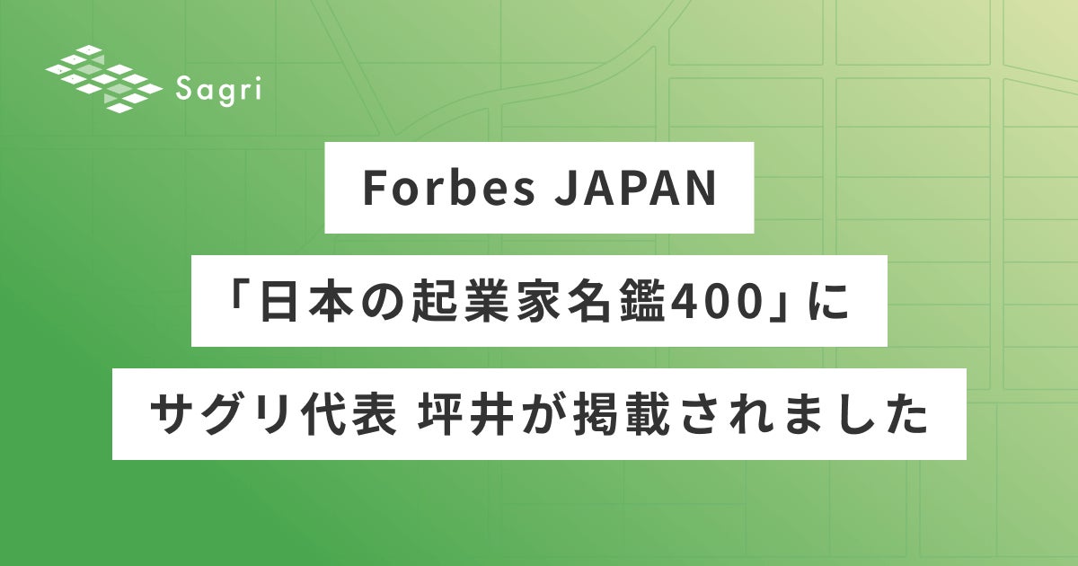 『Forbes JAPAN』の起業家名鑑にサグリ代表の坪井が選定されました