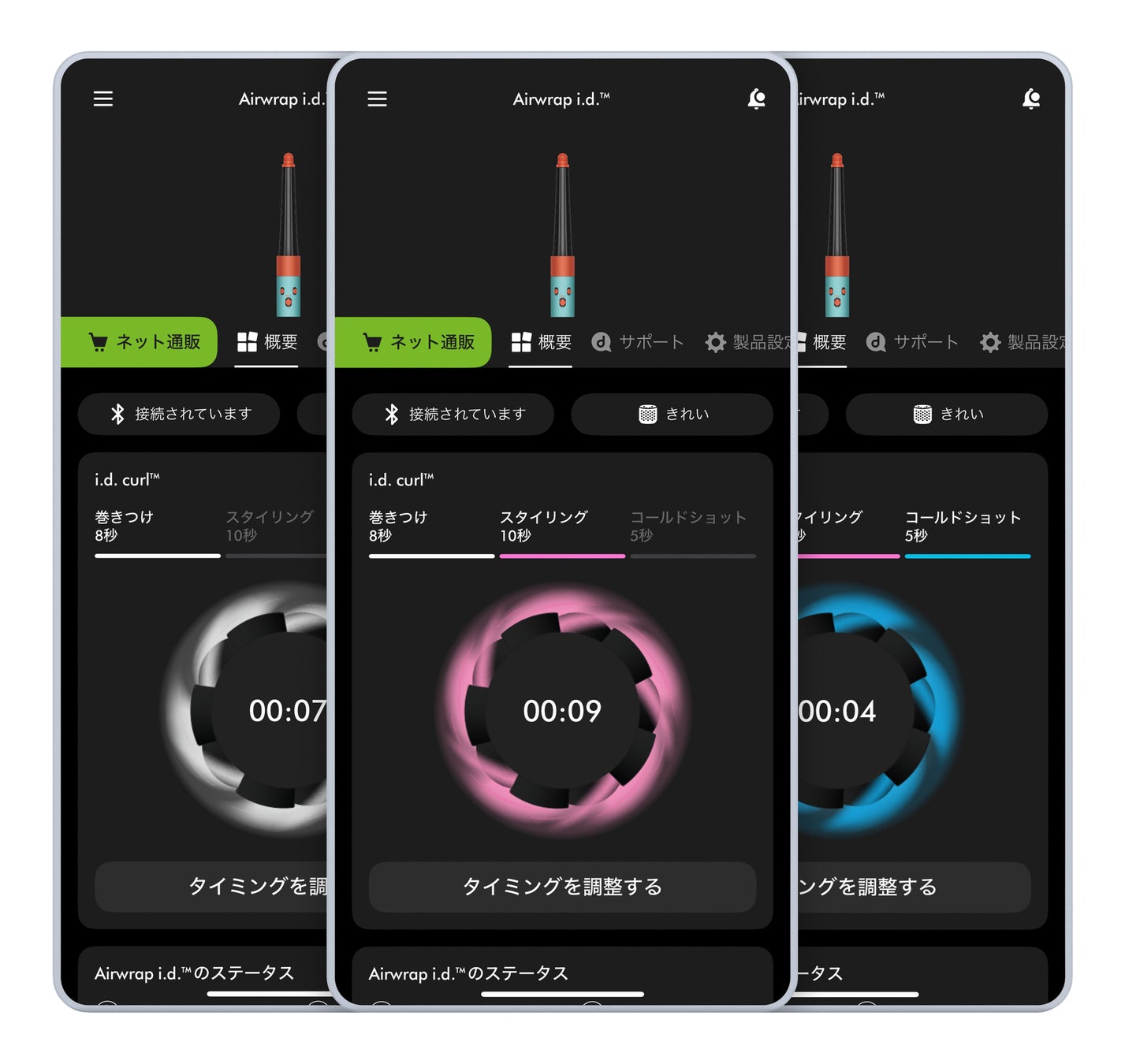 2018年に発売した「Dyson Airwrap™スタイラー」は、過度な熱ダメージを防ぎ、風の力でドライからスタイリングまで1台でできる革新的なヘアケア製品として誕生しました。今回の新製品、「Dyson Airwrap i.d.™マルチスタイラー&ドライヤー」は、『カールがうまくできない』、『アタッチメントが使いこなせない』という消費者調査の結果に基づき、誰でも簡単にスタイリングができるように改善されました。新しいDyson Airwrap i.d.™マルチスタイラー&ドライヤーは、Bluetooth®を搭載し、「MyDyson™アプリ」の「i.d. curl™」に接続することで、パーソナル設定が可能で、ユーザーの髪質に合わせて風量・風温を自動で調整し、理想のスタイリングを提供します。