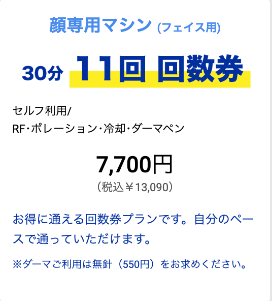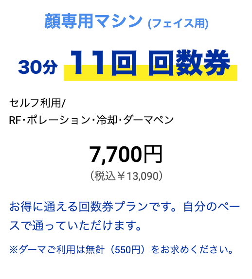 - 回数券もお求めやすく!11回券7,700円!お得なのは初回のみではない!