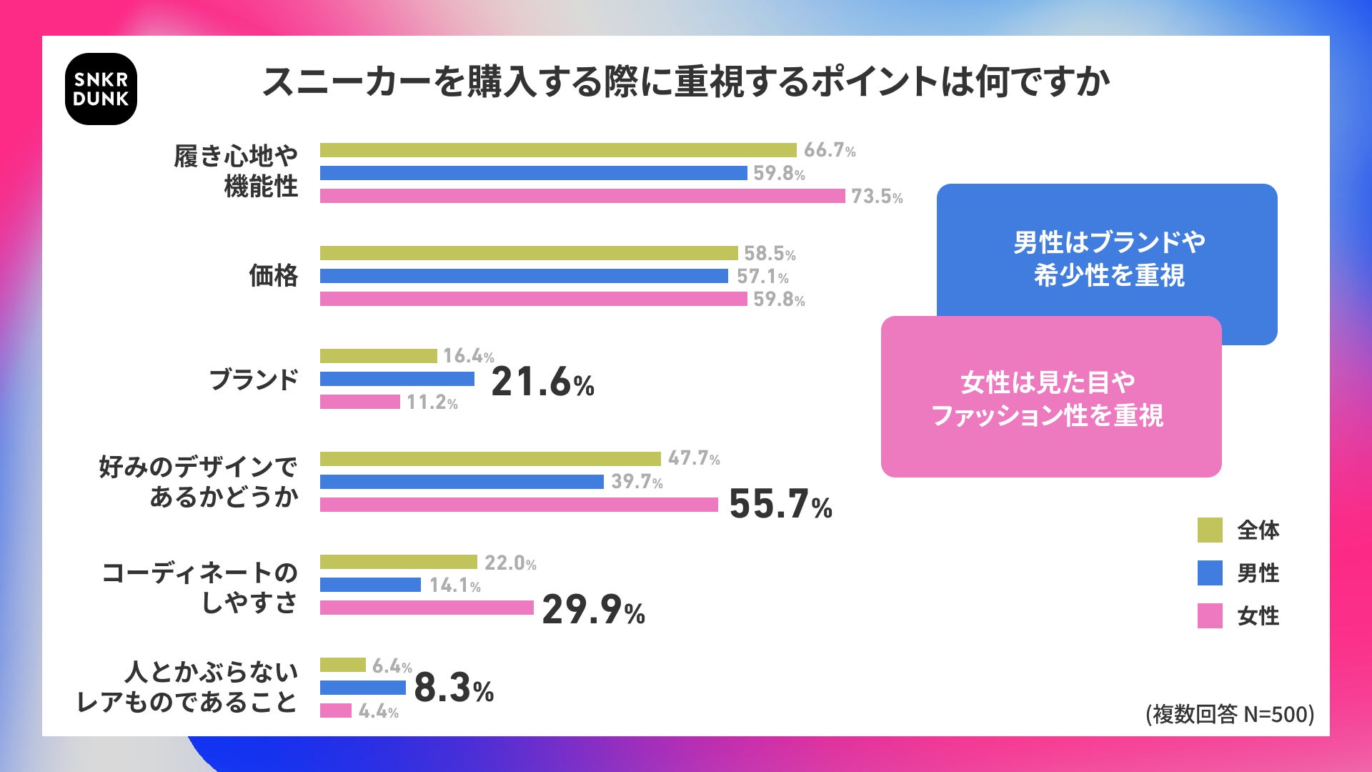 〜重視ポイントや着用シーンにおいて、スニーカーにおける男女の購入心理の違いが明らかに〜