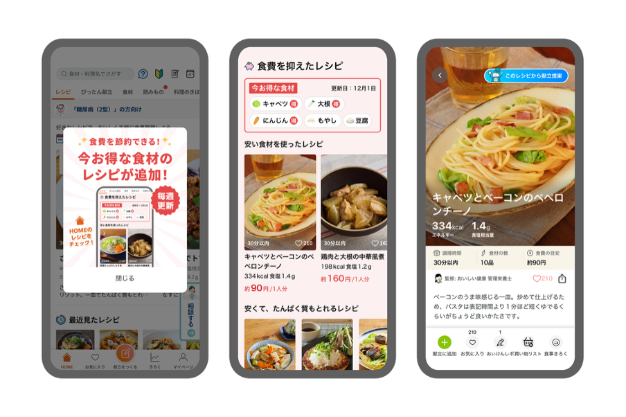 AI献立・栄養管理アプリ『おいしい健康』管理栄養士レシピに対する「食費推定AI」を新たにリリース
