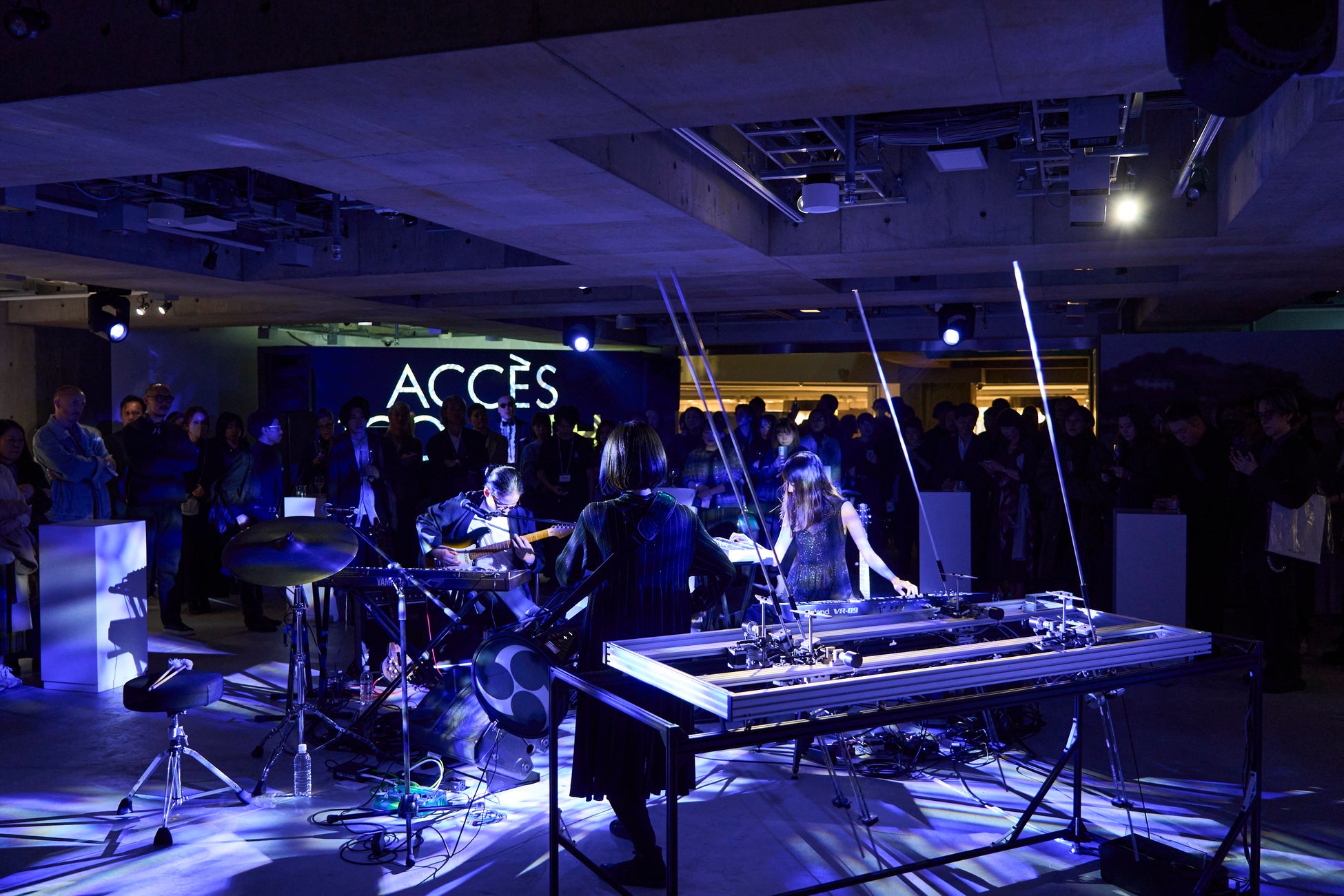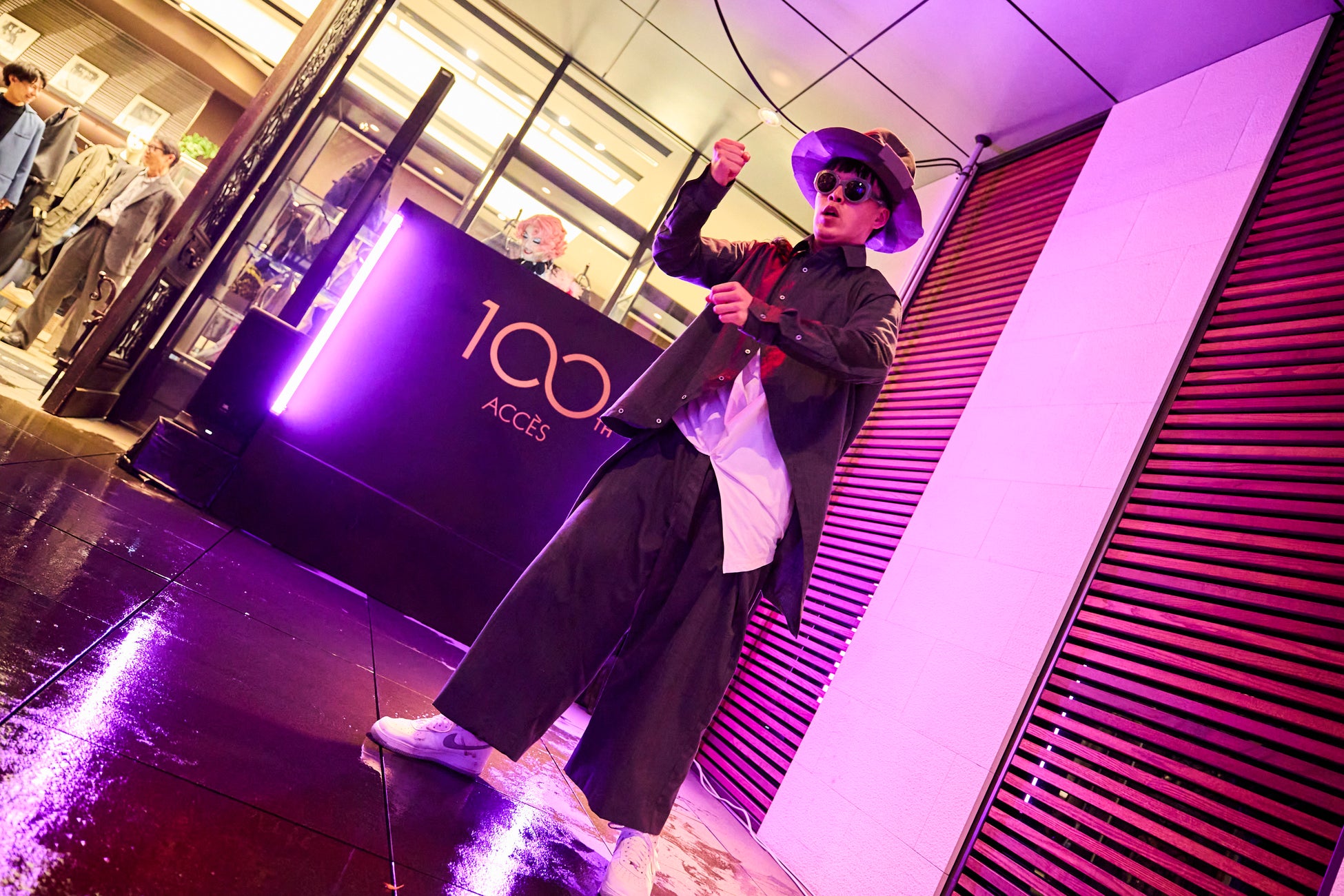 会場全体は光と映像の演出で包まれ、映像作家SHINYA TAKAOKAによるVJと、アクセ創業100周年スペシャルムービーを特別上映。過去・現在・未来が交差する幻想的な空間が広がりました。