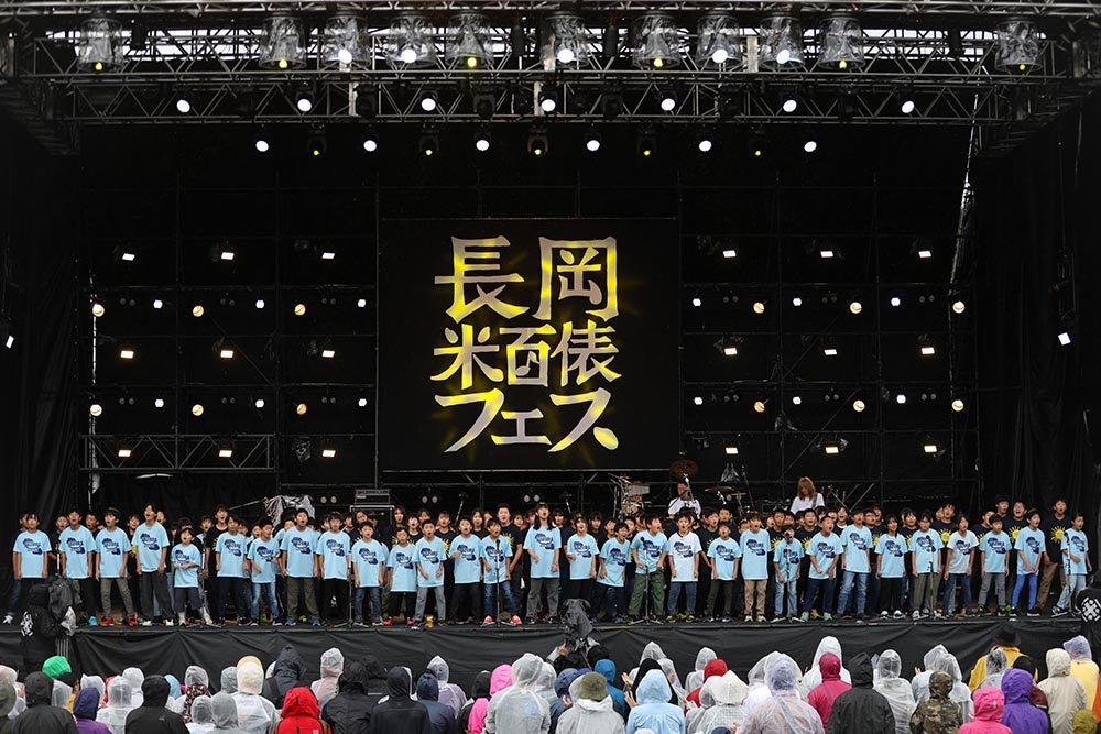 フェスのトップバッターを務めたのは、長岡市立 希望が丘小学校で学ぶ5・6年生。太陽のイラストの中に「TAIYOU」のロゴがデザインされた水色、紺色、白のTシャツに身を包んだ生徒は、オフィシャルサポーターである浜崎香帆にマイクを向けられると「春から練習をしてきたので全力で頑張りたい」「これまで練習してきたことを全力で、笑顔でやりたいです」「今まで支えてくれた人たちのために、頑張りたい」と意気込んだ。キュレーターを務める本間昭光と島田昌典が率いるハウスバンドの演奏が始まると、指を弾いてリズムを取りながら、左右に肩を揺らす108人。ステージではフェスのテーマソング「輝き」を笑顔で合唱し、堂々と大役を務め上げた。