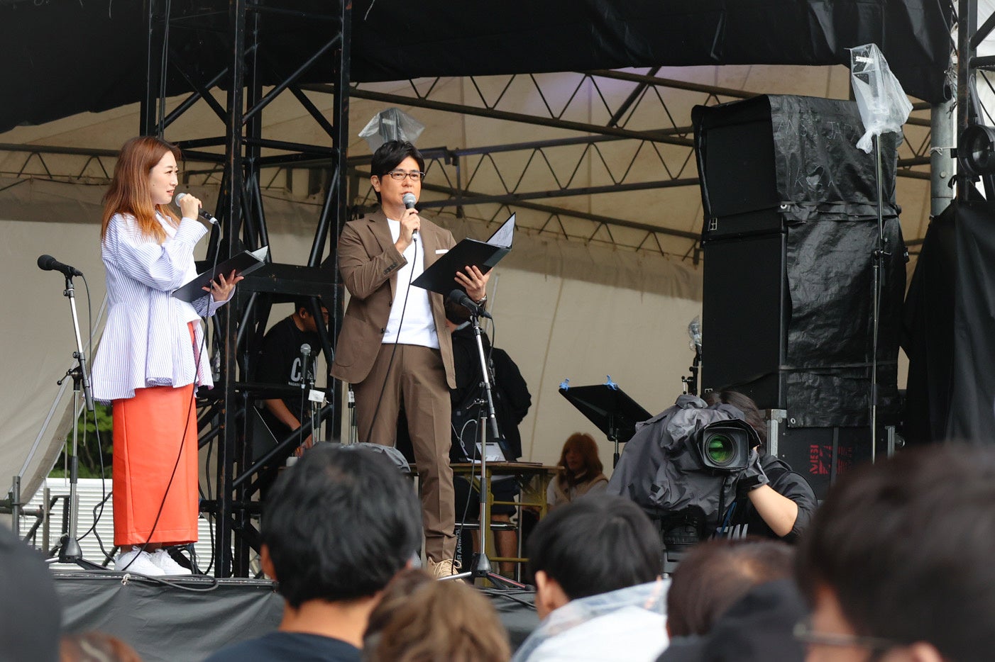 午前11時の開演10分前には、フリーアナウンサーの安東弘樹、FM-NIIGATAパーソナリティの本間紗理奈がMCとして登場。大粒の雨が落ちてきた空を見上げた磯田達伸長岡市長は、「みなさんの熱気で雲を吹き飛ばしてほしい。会場には長岡が誇るグルメが並ぶフードエリアもあるので、大いに楽しんで」と開会を宣言した。